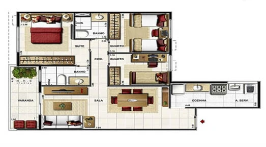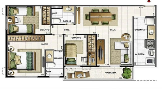 Apartamentos de 3 Quartos com 69 m²