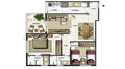 Apartamentos de 2 Quartos com 57,96m²